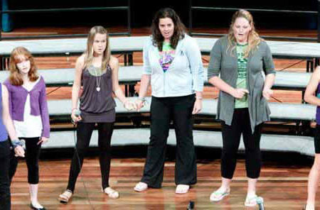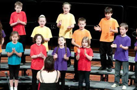 SING IT! ROCK IT! JAZZ IT! WITH RHONDA DAVIDSON-IRWIN The Dandenong Ranges Music Council's Children's Choral Festival involved five primary schools and one High School: Birmingham, Dorset, Karoo, Monbulk and Tecoma with Ferny Creek withdrawing in July and Upwey High School. Each school performed an individual item then combined to form a massed choir for the finale. The Concert was held on Wednesday 16 November at The George Wood Performing Arts Centre at Yarra Valley Grammar and was officially opened by Shire of Yarra Ranges Councillor Graham Warren. The guest Musical Director was the dynamic and respected performer, composer, producer, lecturer and educator in early childhood and music education Rhonda Davidson-Irwin Master in Mus.Ed. BA Mus. Ed. AMusA Flute/Piano. Rhonda also acted as MC during the concert, introducing items and talking about the importance of music in schools and the community. She managed to encourage the entire audience to participate in the final song! Prior to the Concert a Professional Development Day was held for all choral directors and two massed rehearsals for the participating choirs. In 2011, it was decided to invite a community choir to participate in the project to promote lifelong learning, enjoyment and involvement in a choir. Tecoma Sing Australia performed two items and joined the school choirs in the finale. All school choir members were seated in the auditorium to ensure they would be able to experience and observe the community choir. This was followed by the finale - a massed choir involving all schools and Tecoma Sing Australia - over 250 voices accompanied by Kathrine Jacobsen.